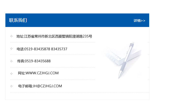 地址:常州市新北區友邦商務大廈1幢16、17層  電話:0519-85101652  傳真:0519-85112595  郵編:213022  網址:www.cz-jiayue_cn.wanhighle.com  郵箱:xiajifengaa@163.com